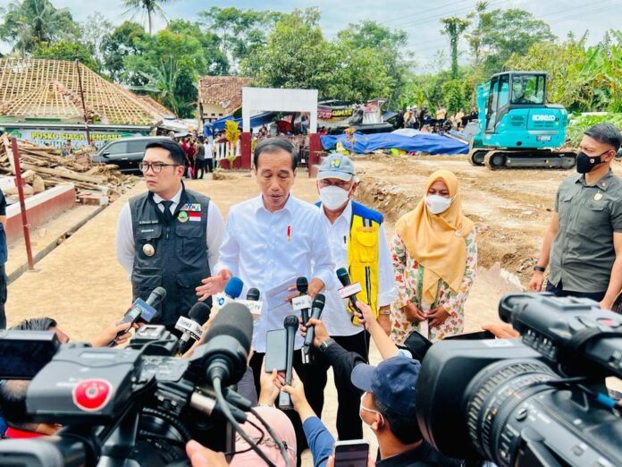 “Saya sudah ke sini ke Kecamatan Cugenang sudah dua kali ini, jadi yang rusak berat memang di sini karena ini adalah pusatnya gempa. Kerusakan rumah, fasilitas pendidikan, fasilitas kesehatan memang yang paling parah di Cugenang,” ungkap Presiden.