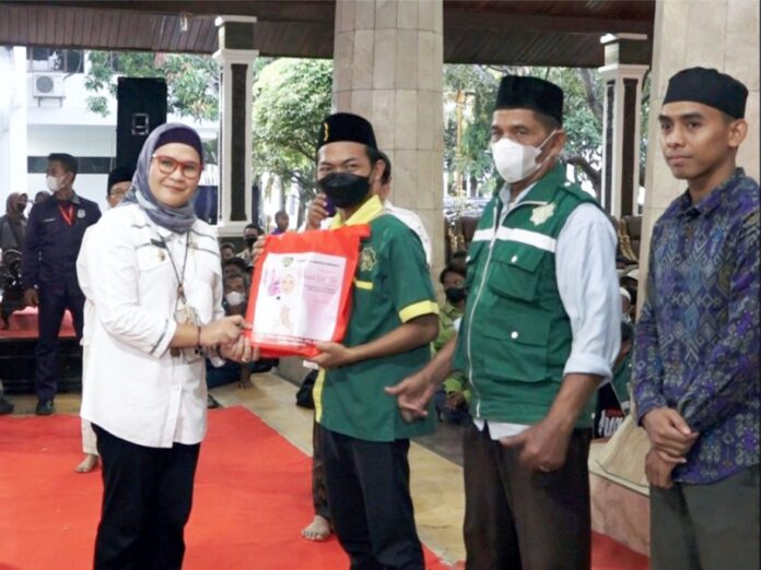 Bantuan paket sembako juga diserahkan Bupati Indramayu Nina Agustina kepada Petugas Masjid Agung Indramayu, Petugas Islamic Centre Indramayu dan Petugas BAZNAS Kabupaten Indramayu dalam kegiatan “Ngabuburit Bareng Bupati” yang diselenggarakan di Pendopo Indramayu, Rabu (27/4/2022).