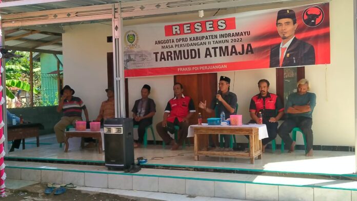 Kegiatan Reses Anggota DPRD Fraksi PDI Perjuangan Tarmudi Atmaja masa persidangan dua Tahun 2022 diadakan temu wicara dengan masyarakat Desa Sukaselamat Blok Waru Doyong Kecamatan Kroya Kabupaten Indramayu Sabtu (28/5/2022).