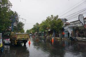 Hujan deras terjadi saat tim Damkar melakukan upaya pelepasan papan reklame. Namun kondisi ini tidak menyurutkan langkah tim dalam melakukan pengamanan agar masyarakat yang melintas tidak terdampak oleh baliho yang sudah miring.