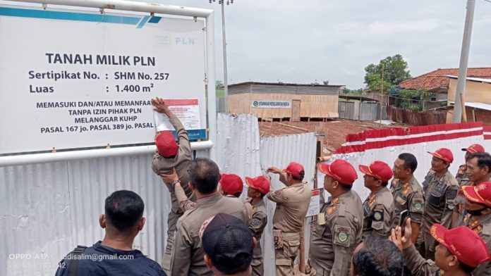 SORANA.CO.ID-INDRAMAYU JAWA BARAT:Satuan Polisi Pamong Praja dan Pemadam Kebakaran (Satpol PP dan Damkar) Kabupaten Indramayu bersama tim gabungan menyegel pembangunan gedung milik PT Perusahaan Listrik Negara (PLN).