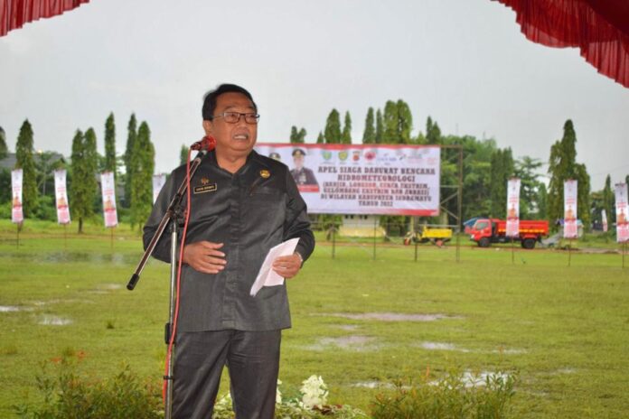 Hal itu dikatakan Staf ahli Politik, Hukum dan Pemerintahan pada Sekda Indramayu Sugeng Heriyanto ketika kegiatan Apel Siaga Darurat Bencana Hidrometeorologi Tahun 2022 yang diinisiasi Badan Penanggulangan Bencana Daerah (BPBD) Kabupaten Indramayu. Namun karena kondisi hujan lebat kegiatan apel dibatalkan, di Lapangan Sport Centre Indramayu, Selasa (6/12/2022).Meski demikian tidak menyurutkan semangat dari peserta untuk mengikuti kegiatan hingga selesai dengan disampaikannya arahan dan koordinasi yang disampaikan Sugeng Heriyanto dan Kepala Pelaksanaan (Kala) BPBD Kabupaten Indramayu Dadang Oce Iskandar.