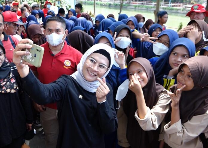 SORANA.CO.ID-INDRAMAYU JAWA BARAT: Masyarakat Indramayu berduyun-duyun mendatangi kegiatan edukasi bertajuk Sabtu Ceria di Taman Tjimanoek Indramayu yang kembali digelar oleh Organisasi Perangkat Daerah (OPD) di lingkungan Pemerintah Kabupaten Indramayu, Sabtu (19/11/2022).Sabtu Ceria kali ini dihadiri Bupati Indramayu Nina Agustina Da’i Bachtiar yang semula hanya lewat video call untuk menyapa para peserta dari anak-anak Sekolah Dasar (SD) di sejumlah wilayah di Kabupaten Indramayu.