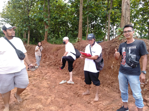Tidak terlihat aktivitas galian di lokasi namun masih terdapat 3 unit alat berat Excavator/Beko parkir dilokasi galian. Setelah melihat langsung titik lokasi galian tanah merah di Blok Jetut, rombongan yang diantar warga setempat merasa kaget dengan kerukan yang dilakukan penambang diluar daripada SOP. Areal tanah blok Sumur Watu kurang lebih seluas 10 Ha dan blok Jetut yang juga seluas kurang lebih 15 Ha itu terlihat lobang bekedalaman lebih dari 5 meter, bahkan menurut penjelasan warga setempat kurang lebih 7 meter kedalamannya.