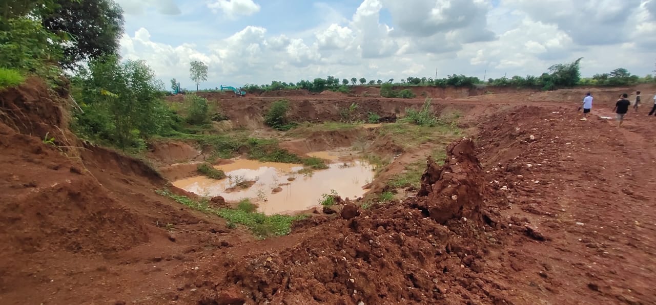 Tidak terlihat aktivitas galian di lokasi namun masih terdapat 3 unit alat berat Excavator/Beko parkir dilokasi galian. Setelah melihat langsung titik lokasi galian tanah merah di Blok Jetut, rombongan yang diantar warga setempat merasa kaget dengan kerukan yang dilakukan penambang diluar daripada SOP. Areal tanah blok Sumur Watu kurang lebih seluas 10 Ha dan blok Jetut yang juga seluas kurang lebih 15 Ha itu terlihat lobang bekedalaman lebih dari 5 meter, bahkan menurut penjelasan warga setempat kurang lebih 7 meter kedalamannya.