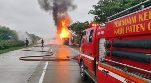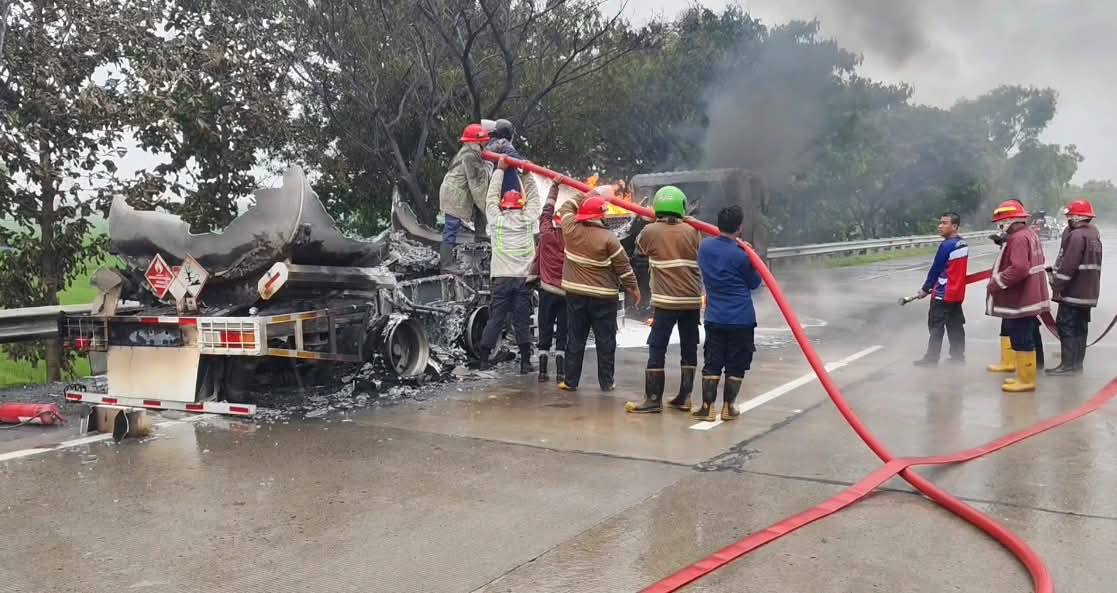 SORANA.CO.ID-MAJALENGKA JAWA BARAT:Tampak dalam gambar terjadi kebakaran truk tangki pengangkut Tiner di Tol Cipali KM 185, masuk wilayah Kecamatan Ciwaringin Cirebon, membuat arus lalu lintas menuju Jawa ditutup sekitar 2 jam. Kamis (/2/2026)