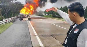 Terjadi Kebakaran Truk Tangki Pengangkut Tiner Di Tol Cipali KM 185