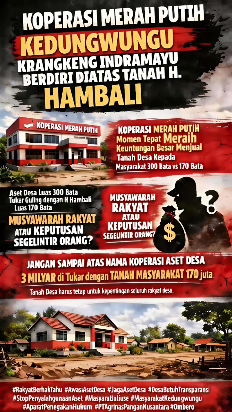 Dalam hal ini Pemdes Kedungwungu menukar gulingkan Tanah Kas Desa kepada H Hambali dan saat ini tanahnya H Hambali dibangun untuk KDMP Desa Kedungwungu.Ketiga hal yang sangat parah dalam konteks tukar guling, secara luas tanah milik Pemdes Kedungwungu lebih luas dari tanah milik H Hambali.