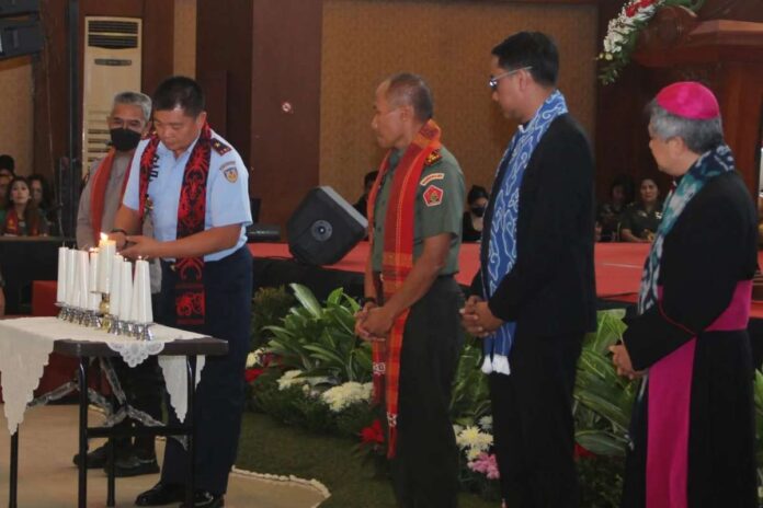SORANA.CO.ID-BANDUNG JAWA BARAT:Wadan Seskoau Marsma TNI Ronny Irianto Moningka beserta umat Kristiani Seskoau menghadiri Ibadah Natal bersama TNI Polri Komando Garnisun Tetap (Kogartap) II/Bandung yang diselenggarakan di Gedung Graha Tirta Siliwangi, Bandung, Jawa Barat, Kamis (12/1/2023).Bertemakan “Hikmah Natal Mengarah Pada Jalan Yang Benar”, pesan Natal disampaikan oleh Uskup Bandung Mgr Antonius Subianto Bunjamin dan Pdt. Dr. Joko Prihanto dihadapan ratusan keluarga besar TNI Polri Kogartap II/Bandung.