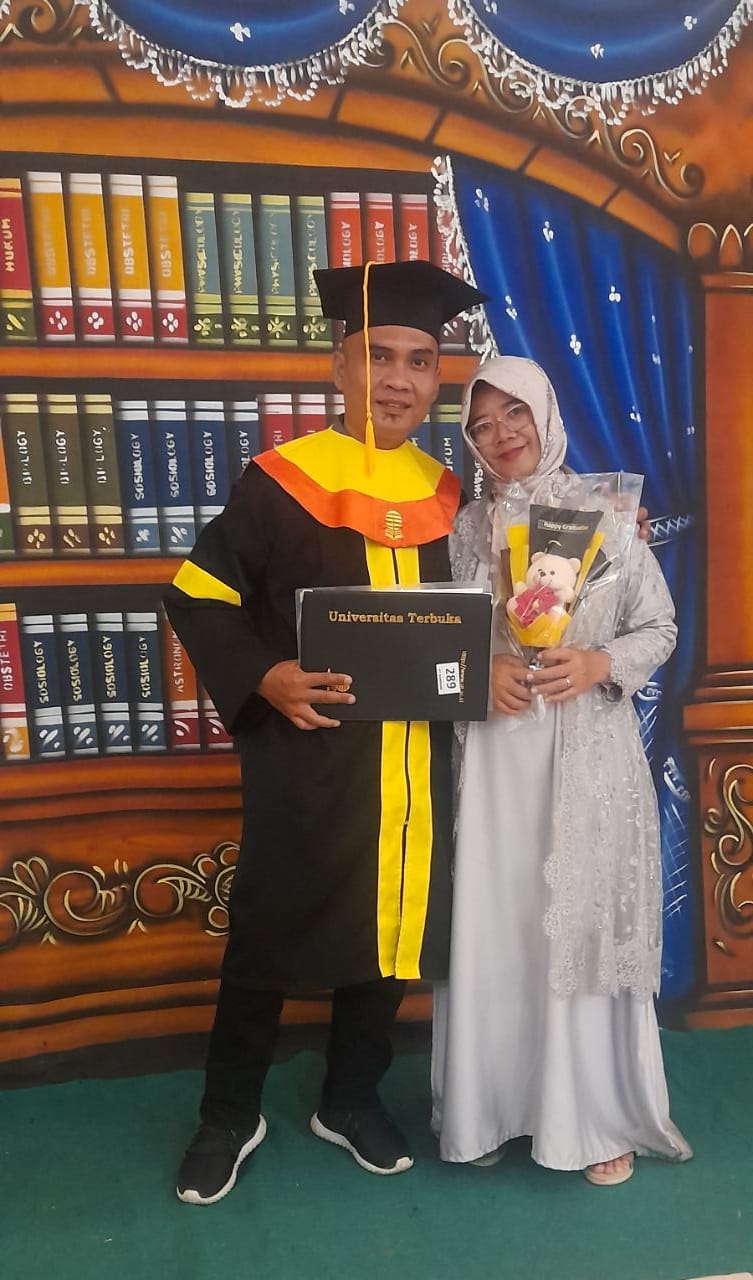SORANA.CO.ID-BANDUNG JAWA BARAT:Banyak suka duka yang dilalui kuliah jarak jauh di Universitas Terbuka (UT) apalagi di tengah-tengah covid-19, kurang dari empat tahun izasah akademik program studi (Prodi) Ilmu Hukum dari Fakultas Hukum Ilmu Sosial dan Politik (Phisip) resmi diterima Suroso salah satu wartawan Berita Online Sorana.co.id didampingi istri tercintanya, pada Kamis (2/03/2023)
