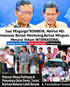 Sebenarnya, Indonesia berhak membvang, berhak mengvsir ( Rohingya) menurut hvkum internasional, tapi diplomasi Indonesia adalah diplomasi kemanusiaan sehingga semua yang datang ditampung,” kata Mahfud di Hotel Aryaduta, Jakarta Pusat,waktu lalu.
