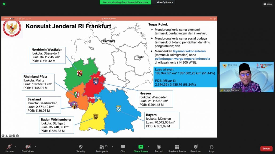 Tampil sebagai Narasumber utama pada webinar kali ini adalah H. Acep Somantri., S. Ip., MBA yang menjadi Konsul Jenderal Republik Indonesia di Frankfurt Jerman.Dalam acara webinar yang diikuti oleh pelajar, mahasiswa, dan masyarakat umum ini, Acep Somantri memaparkan kegiatannya selama selama bulan ramadhan di Jerman.